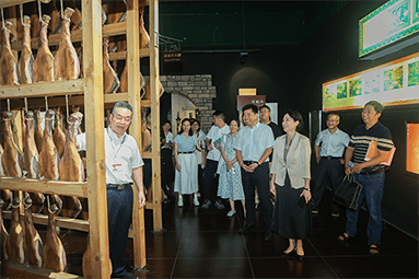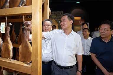 8月22日,金華市委書記朱重烈專程赴金字火腿公司調(diào)研金華火腿產(chǎn)業(yè)振興工作。朱書記在公司領導周國華、馬曉鐘、吳月肖陪同下,走進火腿文化展示館和產(chǎn)品展廳。