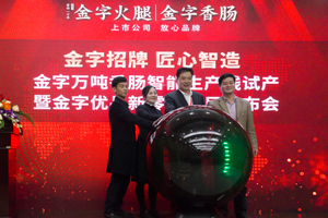 11月23號(hào),由金字火腿主辦的“金字萬(wàn)噸浙味香腸智能生產(chǎn)線試投產(chǎn)暨金字優(yōu)品新零售發(fā)布會(huì)”在浙江省農(nóng)博會(huì)上隆重舉行,這意味著金字火腿將全面發(fā)力新零售精準(zhǔn)營(yíng)銷,不斷開拓香腸等傳統(tǒng)肉制品千億市場(chǎng)。浙江省農(nóng)業(yè)廳、金華市相關(guān)領(lǐng)導(dǎo)、新零售行業(yè)精英出席了本次發(fā)布會(huì),共同見證了這一盛況。在大咖云集的發(fā)布會(huì)現(xiàn)場(chǎng),金字香腸獲得了大家的交口稱贊。對(duì)此,金字生產(chǎn)負(fù)責(zé)人告訴記者,近日試產(chǎn)的金字萬(wàn)噸香腸智能生產(chǎn)線,是從德國(guó)引進(jìn)的智能化香腸生產(chǎn)線,擁有完備的可追溯系統(tǒng)、智能化車間管理系統(tǒng),標(biāo)準(zhǔn)化生產(chǎn)將大幅提高生產(chǎn)效率,確保